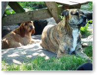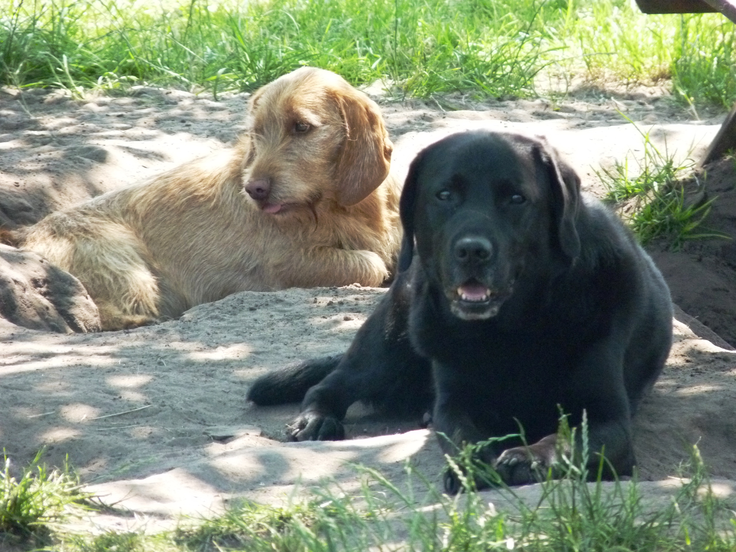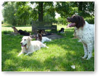 Gemoedelijk plaatje toch? V.l.n.r.: Guus, Laika, Lima, Polo, Senna (in kuil), Phoebe, Froske en Jack.