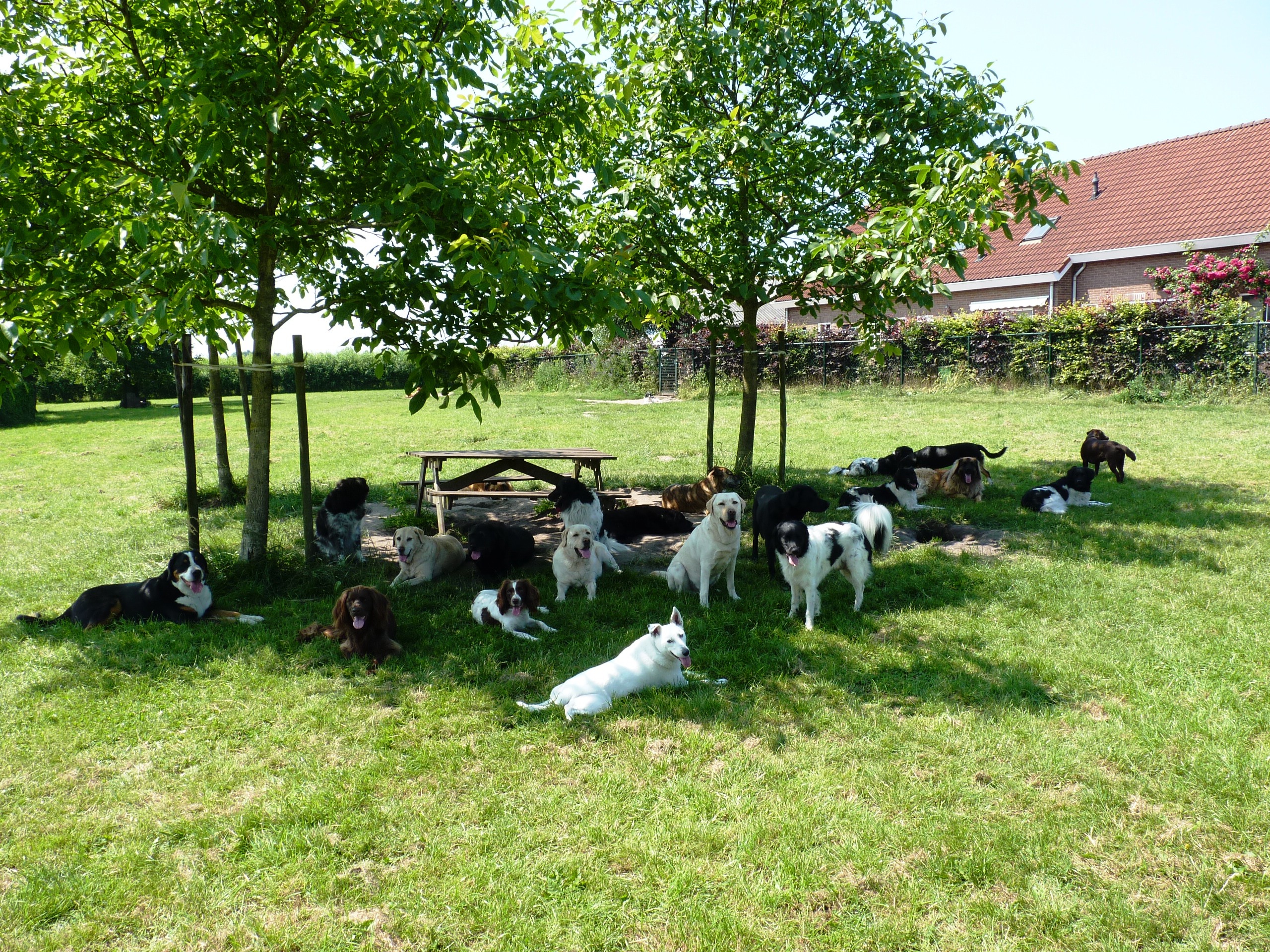 Bijna de hele roedel bij elkaar onder de walnotenbomen.